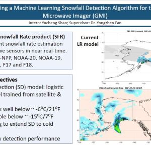Developed a machine learning-based snowfall detection algorithm under Dr. Yongzhen Fan using Python for the GPM Microwave Imager (GMI), NASA’s Global Precipitation Measurement Mission satellite; Developed XGBoost, Random Forest, and Linear Regression machine learning models to predict snowfall using 800+ types of data inputs from GMI & selected for best features & models; Achieved 95% accuracy.